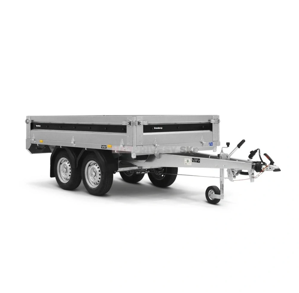 Stabilný brzdený príves od Brenderupu je vhodný na každodenné používanie. Silné oceľové profily zaručujú jeho pevnosť a odolnosť. Sklopné a odnímateľné oceľové bočnice a predné/zadné čelo umožňujú ľahkú nakládku a vykládku prepravovaného materiálu, prípadne spraviť z prívesa plato pre prevoz rozmernejšieho nákladu.
