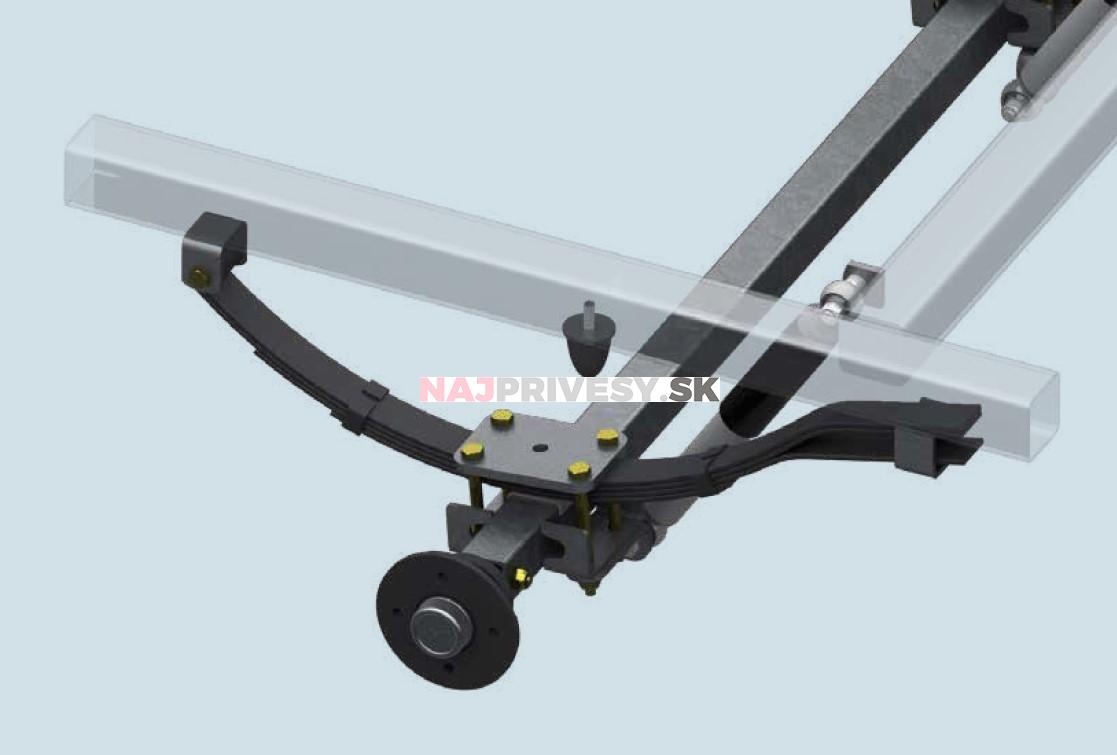 Súčasťou balenia je pevná náprava s dvoma nebrzdenými nábojmi. Listové perá, dorazy, hydraulické tlmiče a materiál na ich montáž je nutné dokúpiť zvlášť. Tieto diely nájdete nižšie v súvisiacom tovare.