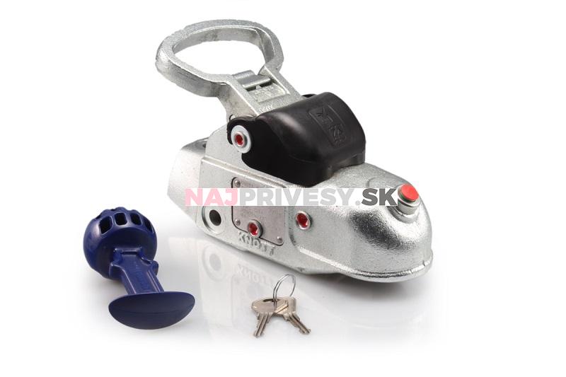Pevnou súčasťou ťažnej spojky je integrovaný zámok. Dodáva sa s dvoma kľúčmi a bezpečnostnou guľovou vložkou. Rozstup montážnych otvorov je 40 mm.